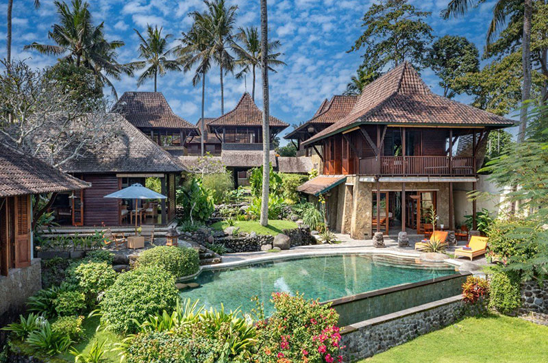 Villa Amaru is positioned in a peaceful tropical water garden and has four bedrooms connected by covered walkways. The air-conditioned bedrooms have ensuite bathrooms and decorated with a peaceful ambience.
