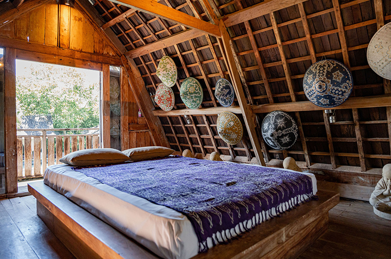 The estate features standalone bungalows modelled after traditional Indonesian farm houses, luxuriously-restored, which are connected through wooden walkways over tranquil lily ponds.
