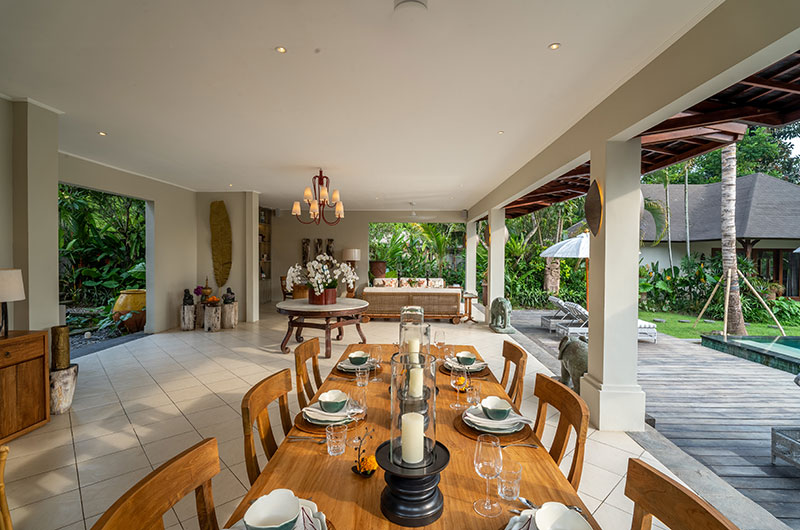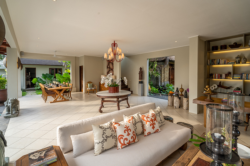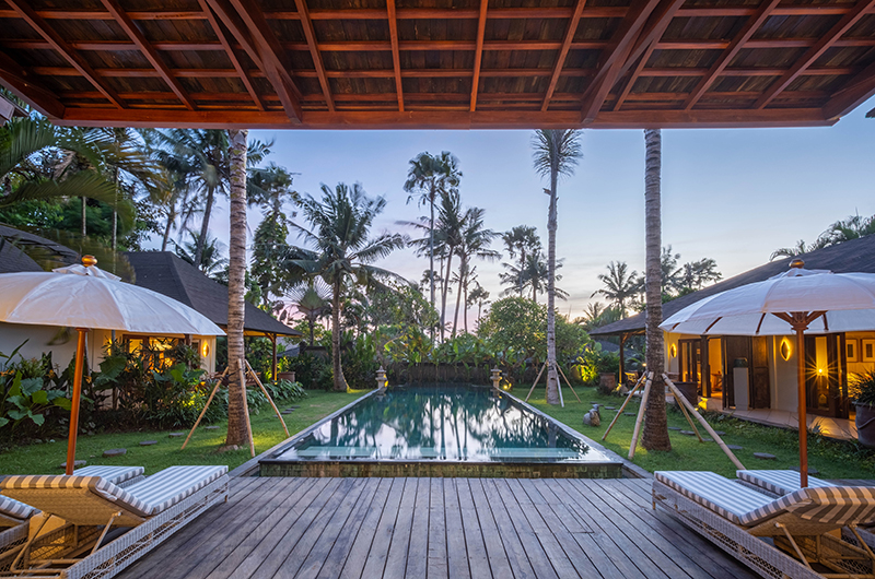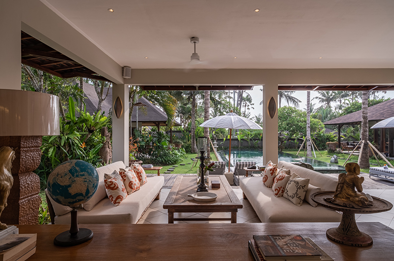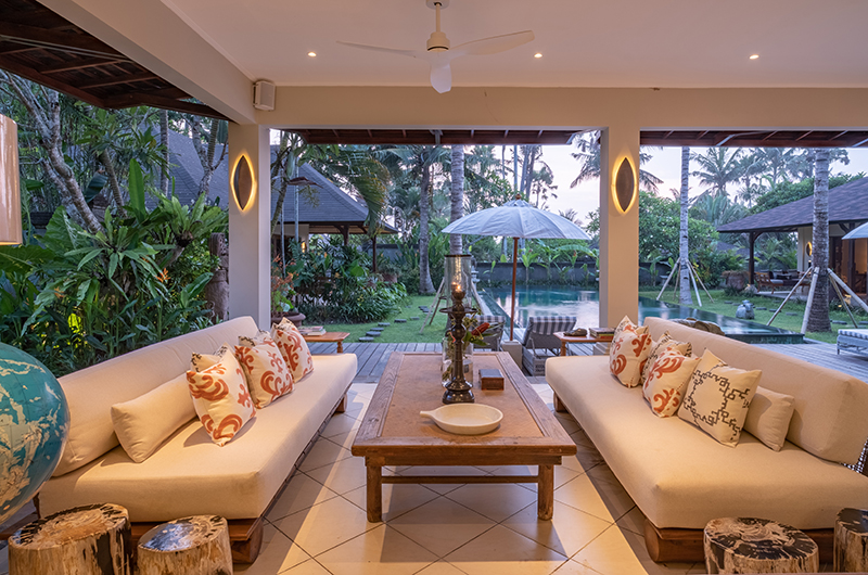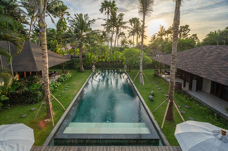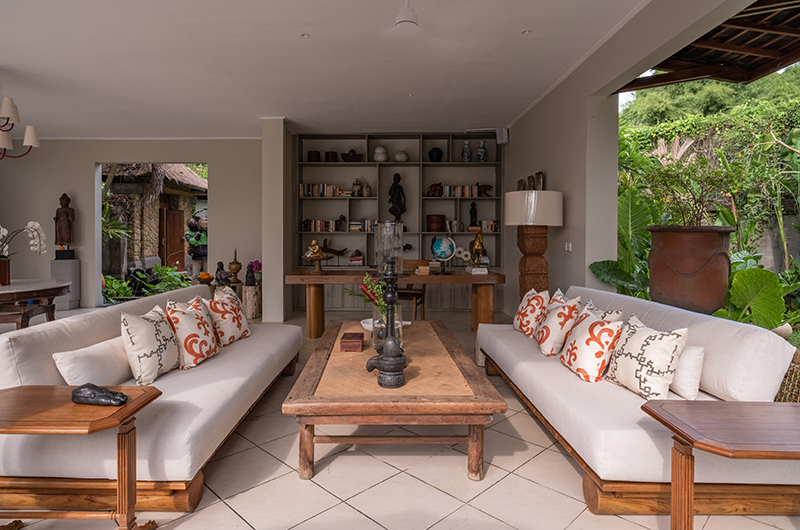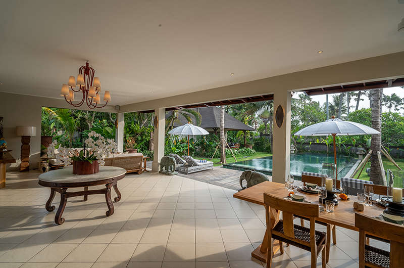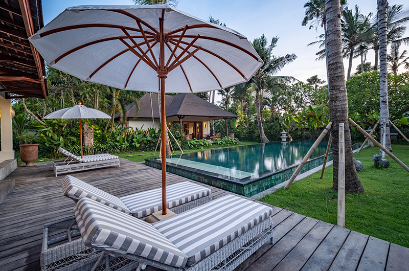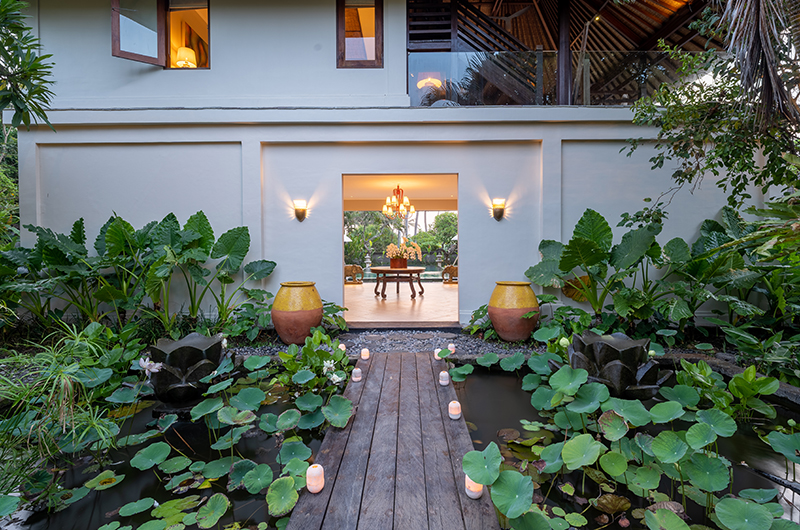 The energy and ambiance of Villa Asmara is evident from the moment guests enter the compound through the traditional Balinese doors and cross the Palimanan stepping stones over the tranquil fish pond. From here, the living pavilion overlooks the 12-metre green-stone swimming pool.