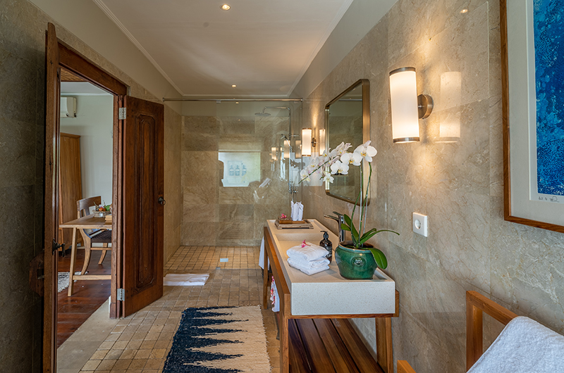 Located in the same pavilion with bedroom 4, the third bedroom houses a king-sized bed and features a semi-open bathroom with a shower.