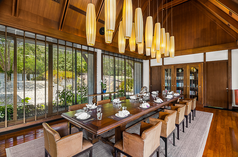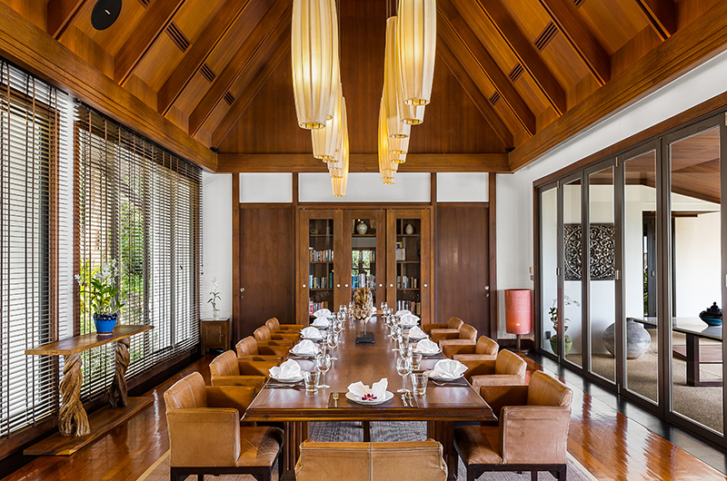 The upper-floor living room features generous sofas and ornate Thai design. There’s also a separate library room that’s perfect for some quiet me-time.