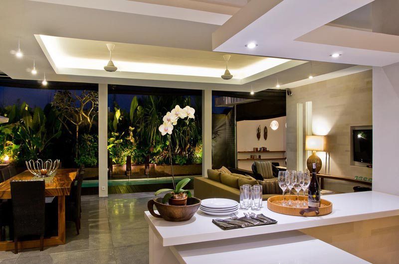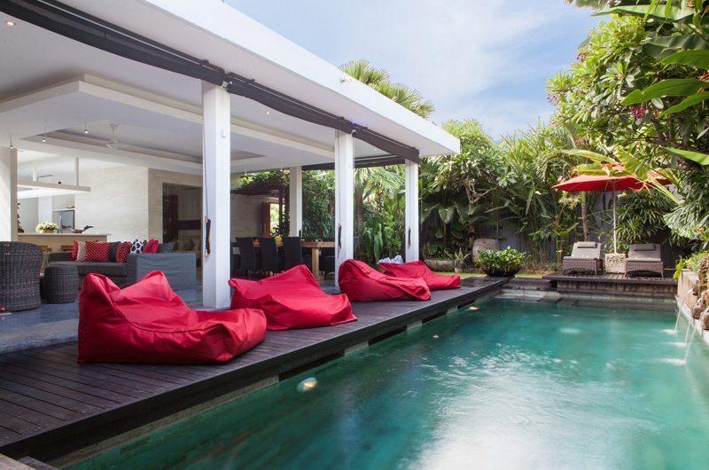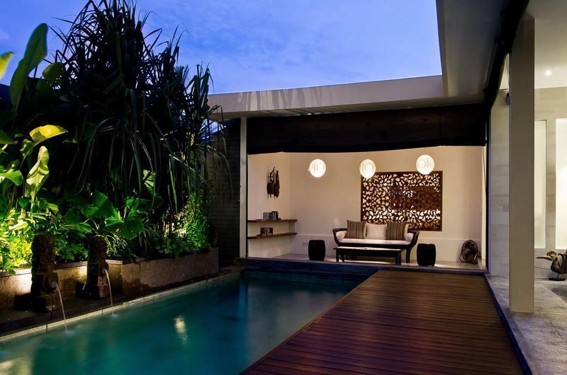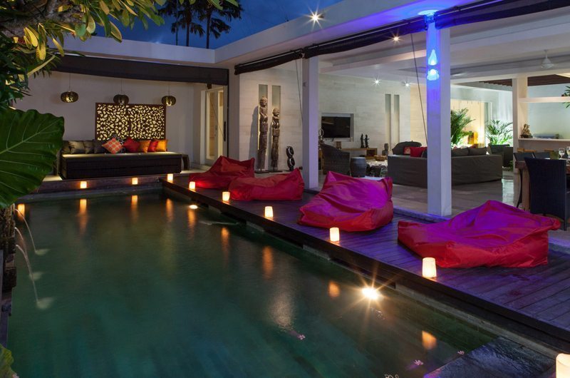 The outdoor features of this Bali villa are commendable with the lush tropical gardens and private pool, making it a perfect setting for a special evening. Elegant timber decks join the pool area and the living room, while sun lounges at one end of the pool offer the perfect place to relax, unwind and soak up some sun.