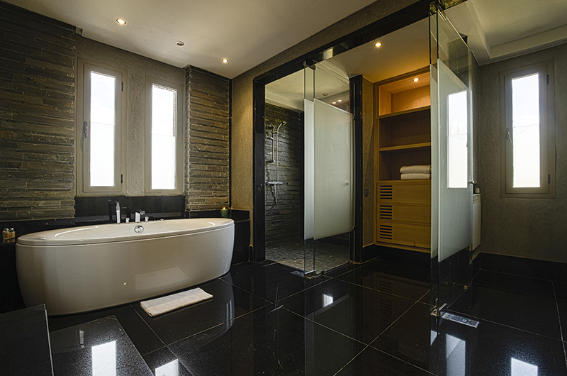 Villa Chamly 6 has four bedrooms. There is one bedroom on the ground floor, furnished with a king-sized bed. Three more bedrooms are housed upstairs – two with king beds and one with two single beds.