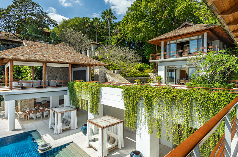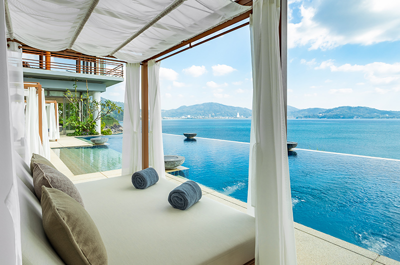 Built on the luscious slopes of Phuket island, Villa Chelay feels like a heavenly mansion hidden on the edge of the world. From its enviable elevation, the villa offers sweeping views of the clear blue Andaman Sea. These dreamy views seem to go on forever, whether you’re immersed in the infinity pool or still cuddled up in bed in one of the glass encased bedrooms. This sprawling mansion beautifully fuses streamlined modern luxury with a touch of Thai decadence. Cascading down the cliffside, the multilevel villa offers abundant space and a luxurious level of privacy. The villa is surrounded by tropical greenery and your only neighbours are other luxury villas housed on Phuket’s prestigious Millionaire’s Mile.