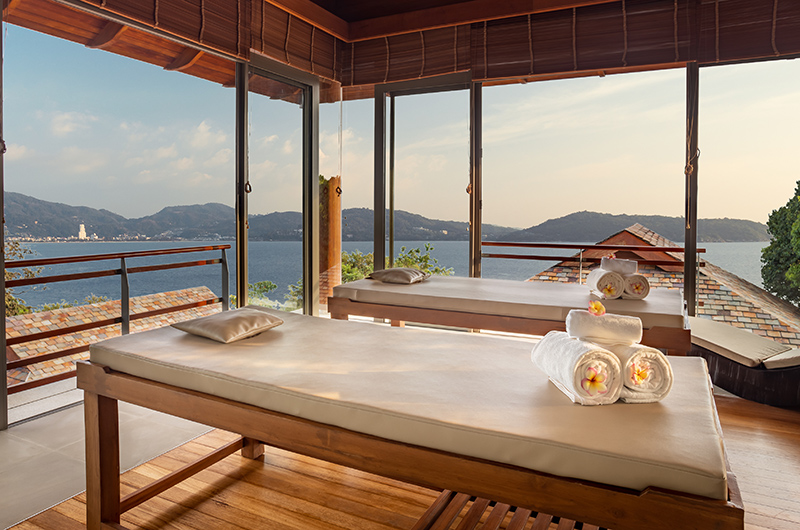 Positioned at the highest point of the property, the villa’s incredible spa pavilion offers sublime panoramas of the ocean and Patong Beach. The air-conditioned space is fitted with two massage beds. Four yoga matts and a portable sound system are also available, making this space ideal for yoga classes and meditation sessions as well.