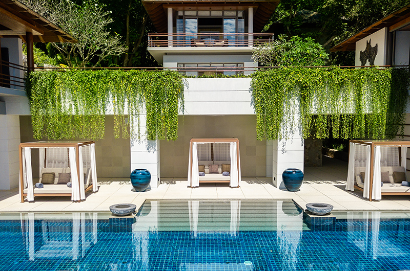 This villa is the perfect place for enjoying Phuket’s unparalleled beauty to the fullest. Carved into Phuket’s rugged coastline, the streamlined villa is engulfed by lush tropical greenery, creating an inspiring juxtaposition between unbridled natural beauty and curated modern luxury. Villa Chelay allows guests to enjoy the lush outdoors to the fullest, with beautiful walkways and scenic balconies connecting the many levels and multiple pavilions that make up the villa. Of course, the best way to take it all in is by being immersed in the incredible infinity pool which opens to sweeping panoramas of the Andaman Sea. The 15-metre-long pool is lined with three cabanas which give the pool deck the look and feel of your own private beach club. There is even a fun table tennis area to keep everyone entertained.