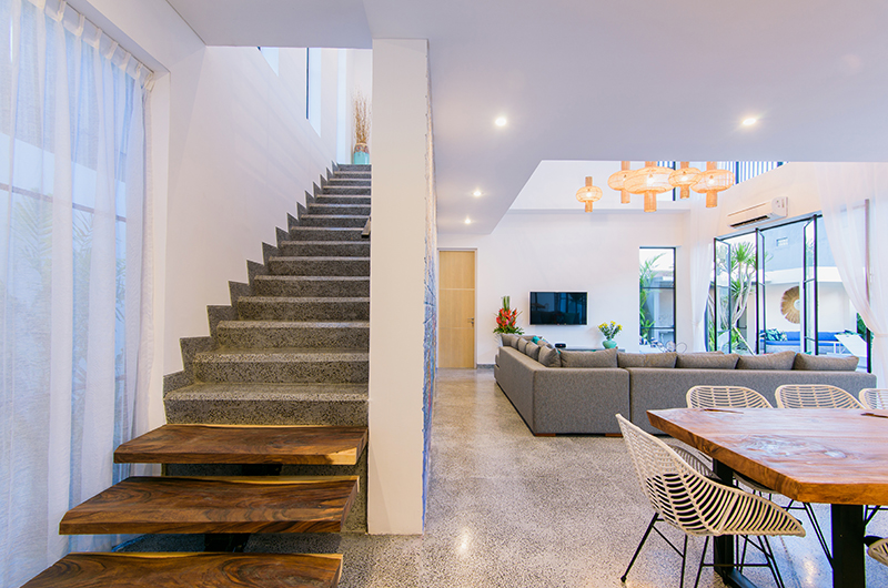 Villa Como’s cool designer interiors match the villa’s trendy surroundings perfectly. The villa is dominantly white and features cool modern furniture and well-chosen art pieces. The whole villa is air-conditioned, though if you prefer, you can keep the glass doors open to let in a gentle tropical breeze.