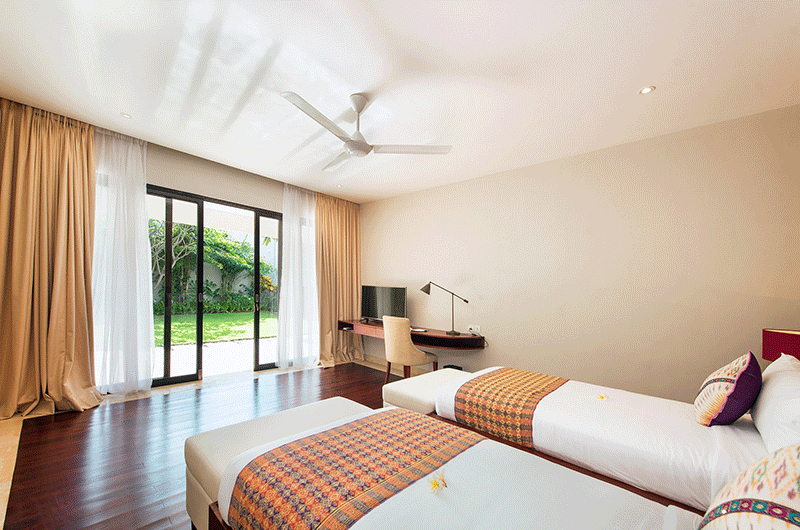 The third bedroom is one of two guest bedrooms located downstairs. The room has two single beds (convertible into a king), a TV and an ensuite bathroom with a shower.