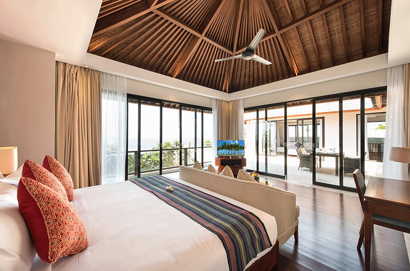 Villa Feronia brings together sleek modern design and sophisticated Balinese details, creating a sumptuous holiday home with views reaching out to the Indian Ocean. Part of the prestigious Karang Saujana Estate in scenic Ungasan in the southern tip of Bali, Villa Feronia’s stylish air-conditioned rooms are crowned with alang-alang ceilings and chandeliers, with full-wall windows looking out to the infinity pool. The four bedrooms are all fitted with luxurious bedding, flatscreen TVs and ensuite bathrooms. Check out the rates for Villa Feronia here.