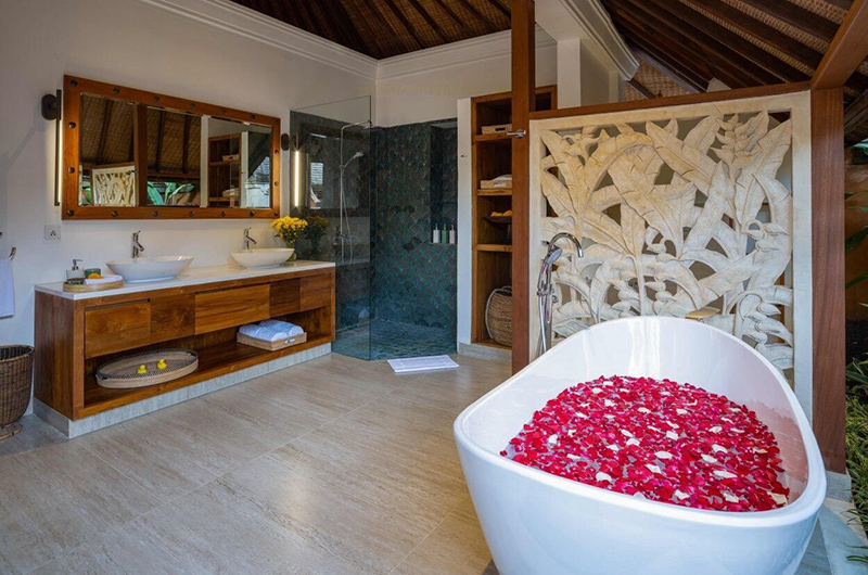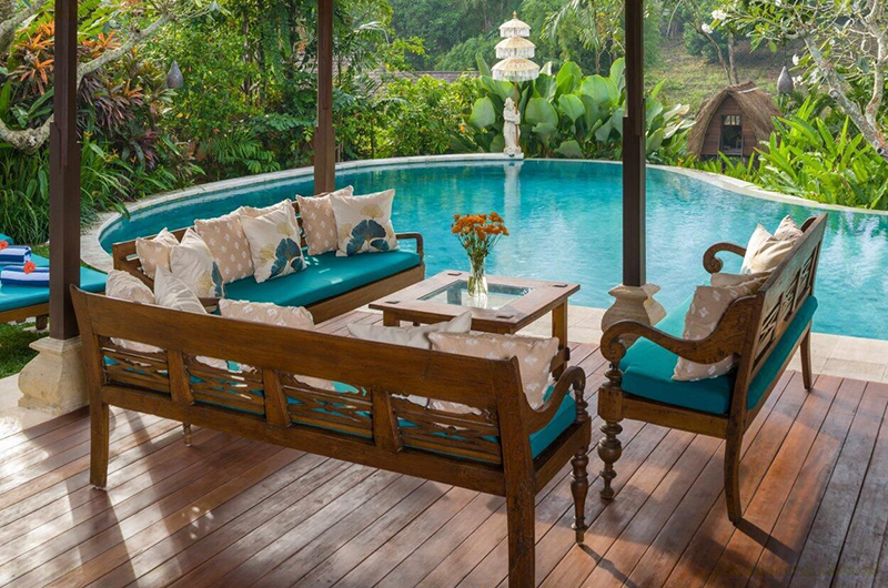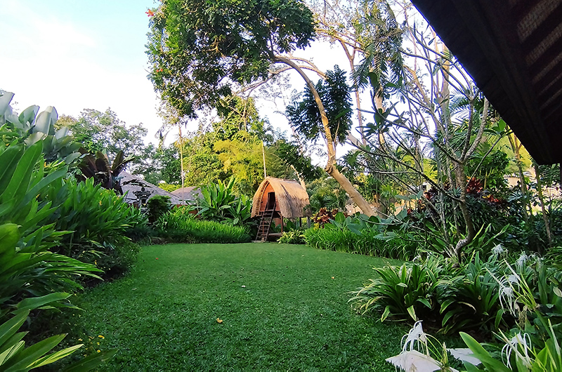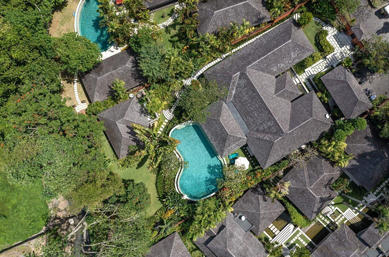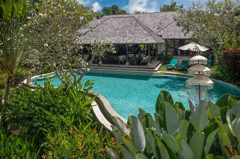 Villa Frangipani is a four-bedroom villa that’s divided into two pavilions. The main house includes the living and dining areas and three bedrooms. The second pavilion houses one more bedroom. The villa has a free-form swimming pool. Villa Frangipani is part of the same estate with Villa Mata Air, Tukad Pangi Villa, Villa Pangi Gita, Villa Bunga Wangi and Villa Bunga Wangi.