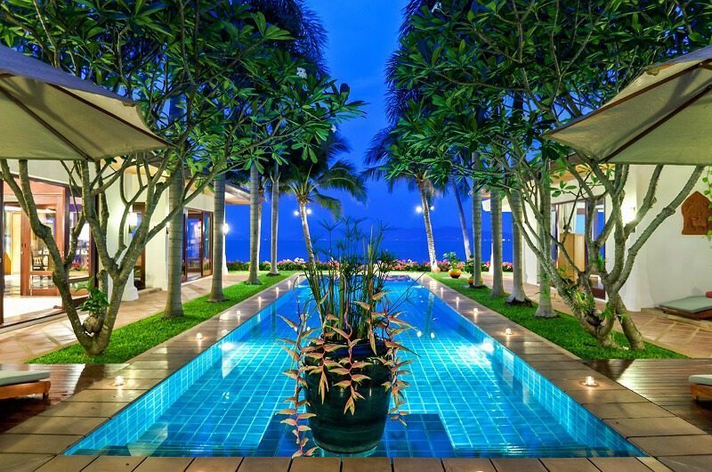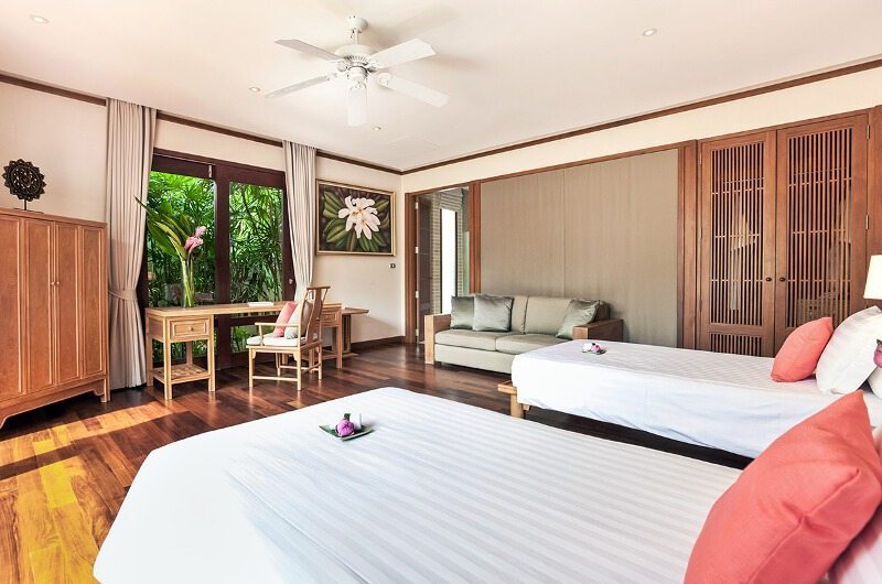 Villa Gardenia has five bedrooms – two are furnished with king-sized beds and three rooms come with two single beds each. The bedrooms are built in an L-shape around the swimming pool, with the master bedroom located closest to the beach.