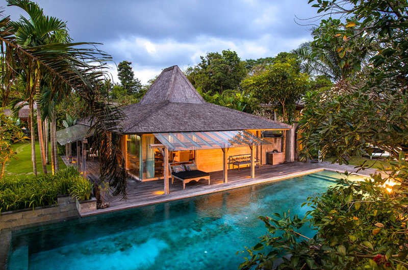 Villa Hansa’s beautiful tropical gardens are bordered by a tropical river and feature not just one but two swimming pools. The first is an 18-metre rectangle pool and the second is a freeform pool measuring at 12 metres long. This lavish layout also means there’s plenty of room to relax on the surrounding sun loungers. Next to the lagoon pool is the villa’s beautiful yoga pavilion.
