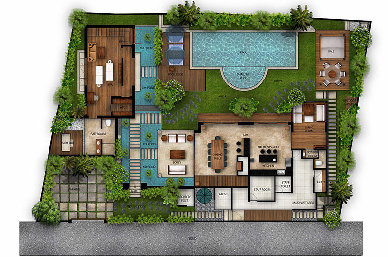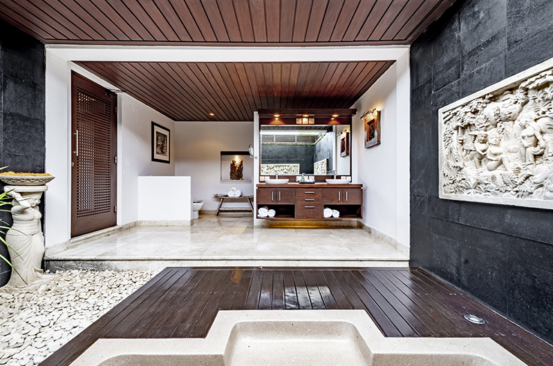 Villa Impian Manis has a harmonious feel to it, with the classically styled villa beautifully paired with the landscaped gardens with their fish ponds, exotic flowers and shimmering swimming pool. The villa is divided into two pavilions with the master bedroom offering an added dose of privacy housed above the villa’s exclusive spa room.
