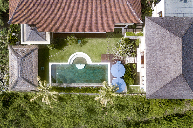 Villa Impian Manis is a three-bedroom villa that’s divided into two pavilions. The main house features the living and dining areas on the ground floor and two guest bedrooms on the upper floor. The second building houses the spa on the ground floor and the master bedroom on the upper floor. Villa Impian Manis has a private rectangular swimming pool.