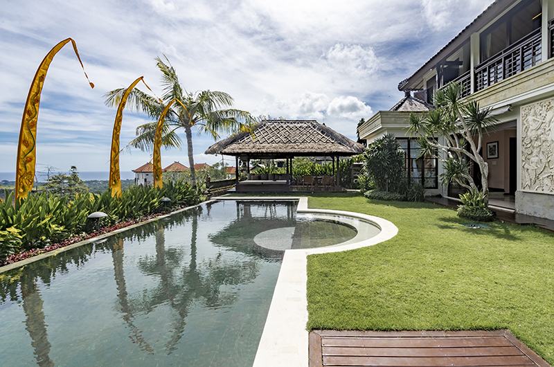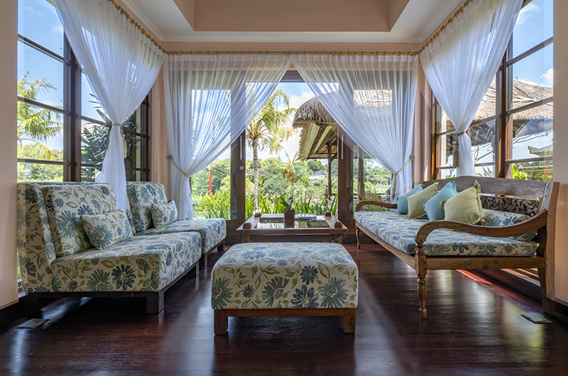 Villa Impian Manis’s beautiful gardens are a tropical dream come true, with peaceful fishponds shaded by fragrant frangipani trees and the shimmering swimming pool framed by swaying palm trees. A beautiful thatched roof pavilion perched beside the pool offers a picturesque setting for alfresco dining or even for a luxuriant afternoon nap on the plush daybed.