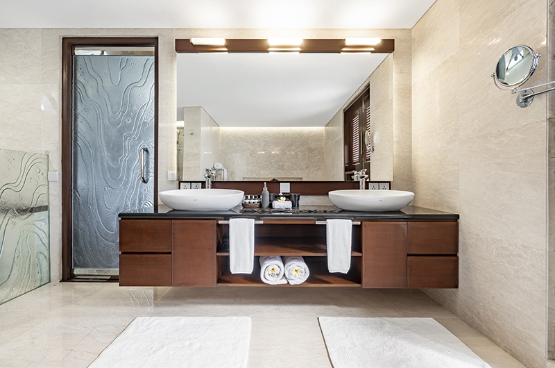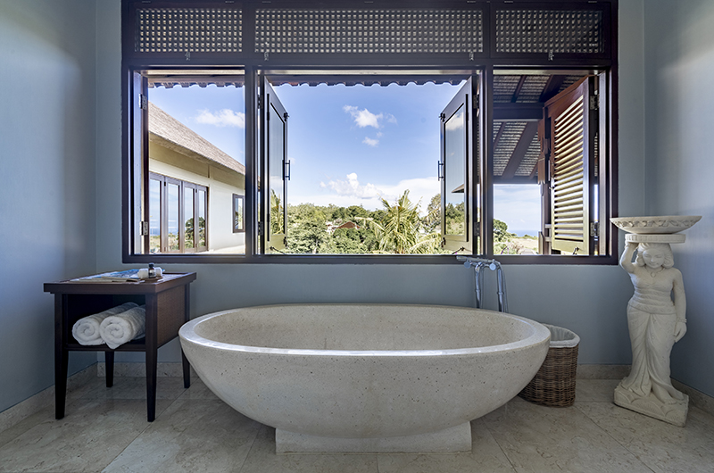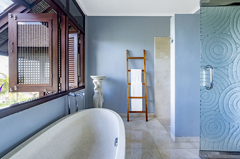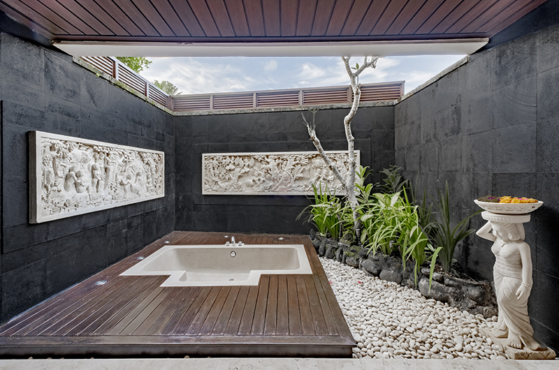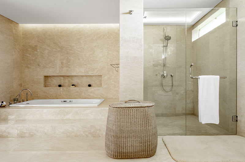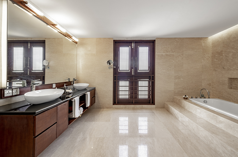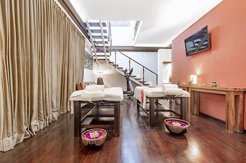 Villa Impian Manis’s spa room is located below the master bedroom. This serene space features two massage beds, with an adjoining bathroom fitted with a large sunken bath.