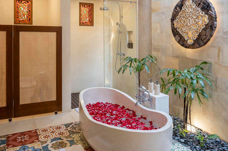 Similar to a traditional Balinese compound, Villa Inara is nestled inside protective walls that insulate you from the outside world. Hidden from the world and surrounded by tropical beauty, it’s impossible not to feel completely at ease. The villa’s interiors offer a fresh modern take on tropical living – think cool polished floors, elegant timber and wicker pieces, dreamy canopy beds and lush indoor/outdoor bathrooms. It is all beautifully, blissfully Balinese.