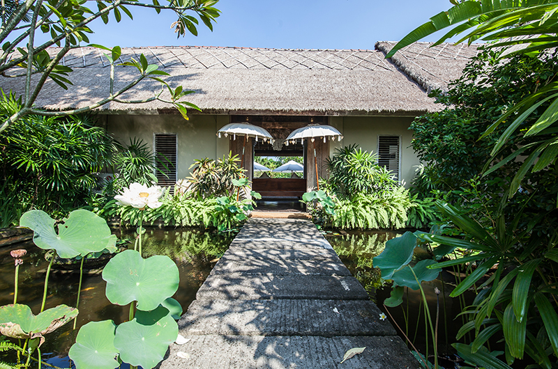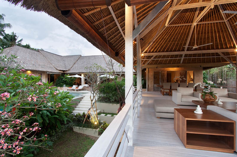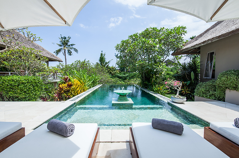 Villa Inti is a five-bedroom villa that’s built over two floors. The main floor includes the open-sided living and dining areas, enclosed TV room and three bedrooms. Two more bedrooms are located on a level below the pool. The villa is built in a U-shape around a private swimming pool.