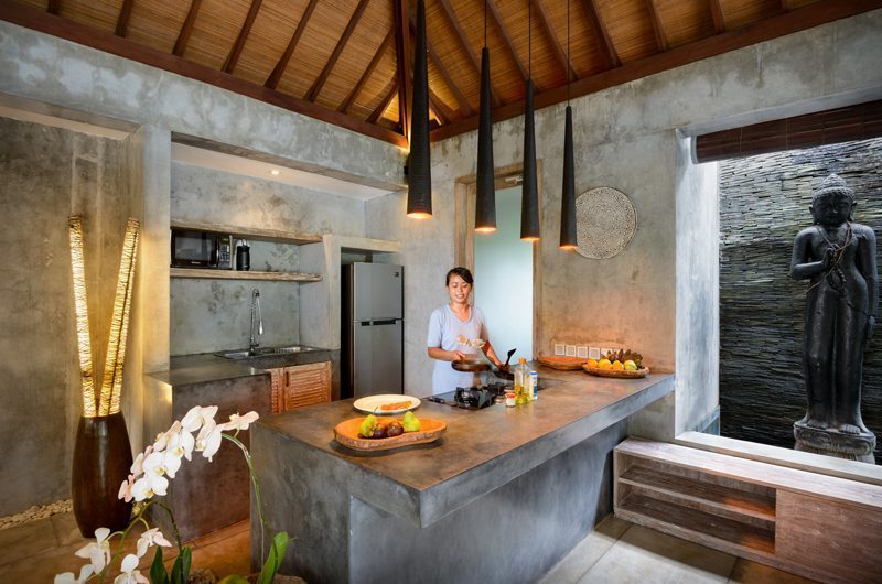 Villa Ipanema’s dining table is located in the same open-plan living pavilion and can comfortably seat up to 10 guests. Villa Ipanema features a fully-equipped kitchen furnished with a blender, toaster, oven, stove top and other necessities.