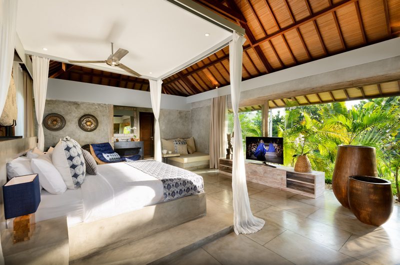 Located at one end of the pool, Villa Ipanema’s living room has an open-sided layout which fluidly connects to the pool. The room is furnished with ample sofas and a LED TV. There is a second lounge area upstairs on the first floor.