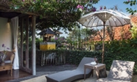 Three bedrooms are located on the second floor of the villa. Two of them share a bathroom that is designed with a good mix of old and new – an antique wooden washbasin coupled with a modern super-sized showerhead and bathtub. The Master bedroom has an ensuite bathroom with a shower. The fourth bedroom is in a cottage on the far side of the pool.