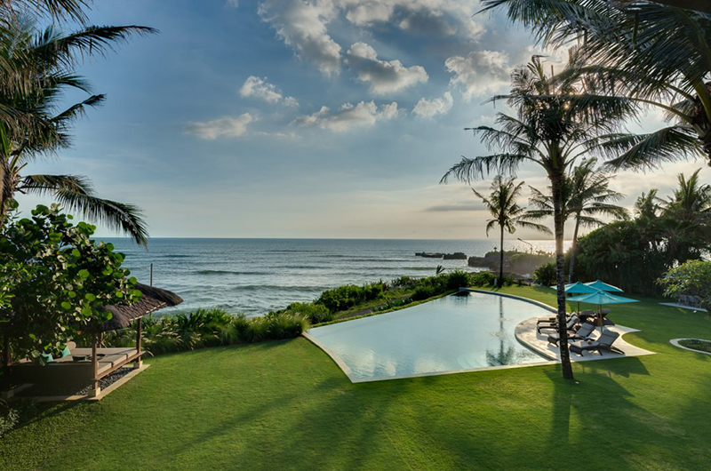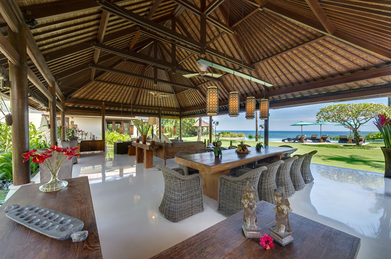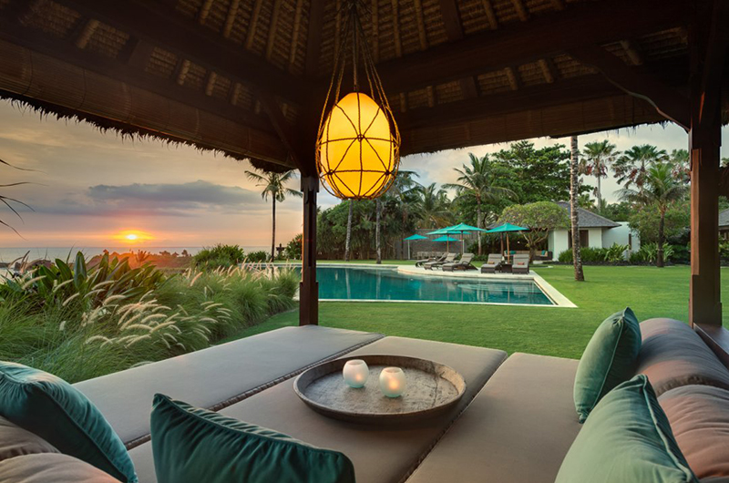 After stepping through the beautifully restored, antique Javanese entrance doors, the luscious garden unfolds before you, passing bedroom pavilions on both sides of the main path that meanders through the middle of the property, finally revealing an infinity pool which magically appears to flow into the ocean.