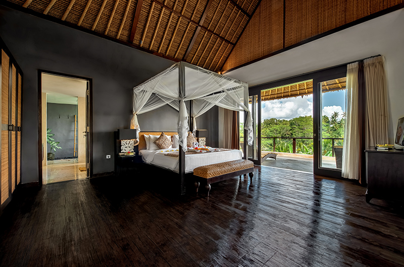 Cempaka, the second master suite at Villa Kembang, features a king size bamboo four poster bed, large vaulted ceilings, and a chic living area. The suite also includes a grand bathroom perfect for romantic couples. Additionally, the room can access the kids room, Kamboja, by an interior wooden bridge.