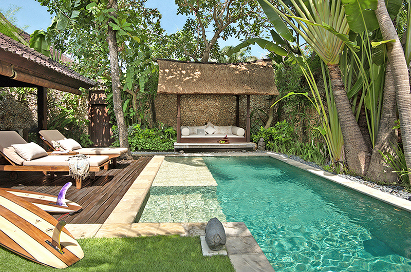 Villa Kubu 10 captures the summertime feel of Bali with its turquoise tile swimming pool, thatched roof bale and tropical island style interiors. Surrounded by tropical gardens and high walls ensuring privacy, Villa Kubu 10 offers the ideal tropical getaway for couples.
