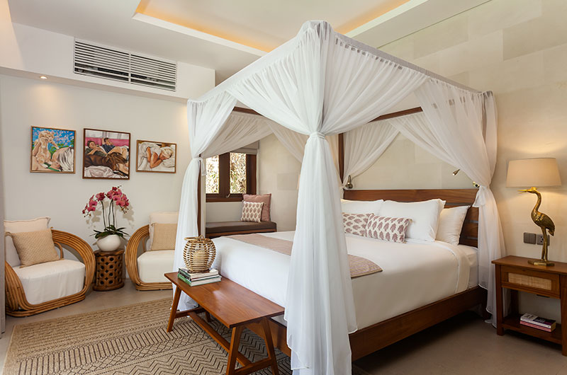 Villa Lenú captures that laidback island lifestyle every city dweller daydreams about. The villa is decorated in calming hues of white, cream, and wood. It’s a mix that calls to mind classic Balinese homes, but this villa adds some life and colour with its lush green gardens and jewel shaped swimming pool. Then there’s the vibrant art that truly makes this villa one of a kind. Most of the art you see in the villa was created by the owner right on the premises. It only makes sense – we can hardly think of a more inspiring setting than beautiful Bali!