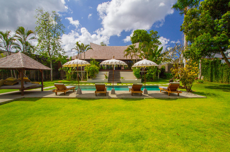Villa Mahe’s private pool deepens incrementally with wide steps leading down to the deep end, meaning kids can try the waters safely. The pool is surrounded by lush tropical greenery and deck chairs with parasols. At one corner of the pool there’s a shaded bale with soft cushions perfect for stretching out for a nap.
