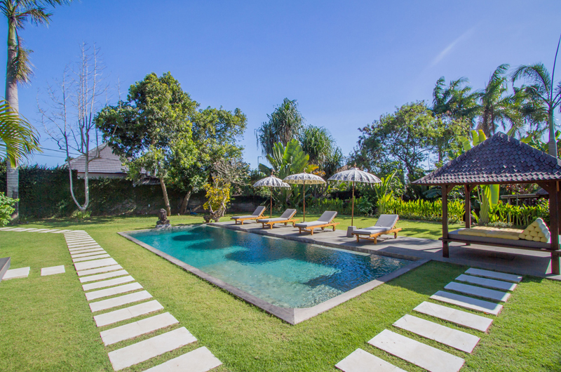 Villa Mahe is a tropical family villa in Umalas, the laid-back area neighbouring trendy Seminyak in Bali. The three-bedroom villa has an inviting pool with wide steps creating a shallow section for the kids and a bedroom with two single beds and “Aloha” etched on the wall offering the perfect quarters for young travellers. The villa has a beautiful bohemian style with tiled Moroccan floors and exotic open-air bathrooms.