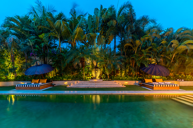 Villa Nalina’s crowning glory is the huge 20-metre swimming pool which is surrounded by white sun loungers, day beds and Balinese parasols. There is a shaded poolside bale at one end of the pool.