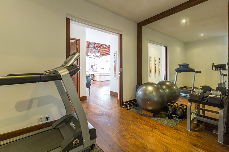 Villa Naty’s gym includes a treadmill, exercise bike, weights, a gym ball , TRX home gym, gym rings and yoga mats.