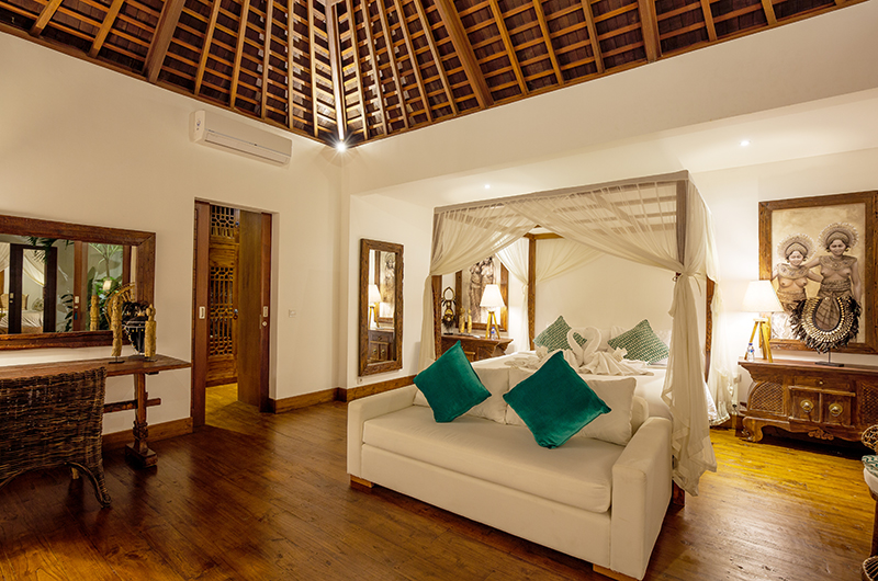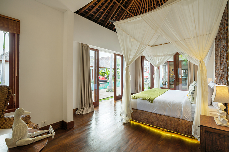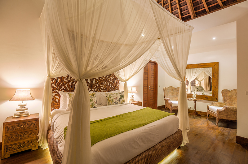 The first master bedroom has a king-sized bed and an ensuite bathroom with a private plunge pool and shower.