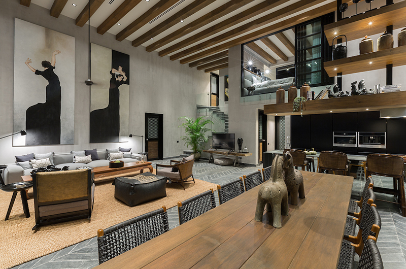 It starts with the pleasant division inside the villa, which balances the privacy that everyone needs in those pampering guest rooms and the central guest space with its high ceilings, furniture, accessories, pictures and the wonderful monochromatic colors that conveys a restrained and relaxing richness.