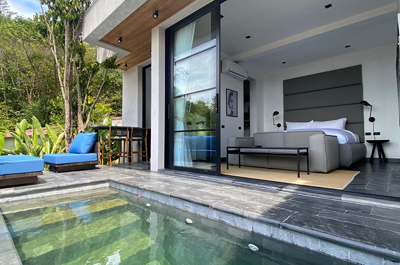 The fifth bedroom is The Bali Suite, offering luscious views of the gardens. The room has king-sized bed, private plunge pool and kitchenette, offering an added level of privacy. The ensuite bathroom has a shower.