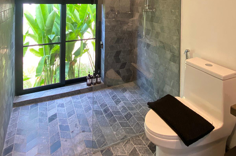 The fourth bedroom is nicknamed The Jungle Suite, accessed through a staircase leading down from the terrace. Offering lush views of the untamed rainforest, this room has a king-sized bed and an additional sofa bed sleeping two guests, making this a great family unit. The ensuite bathroom features both a bathtub and a shower.