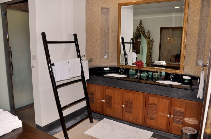 The villa’s generous dining table sits 12 people, allowing all guests to come together and enjoy a meal in a truly charming setting. The dining area is directly connected to the spacious living room, which allows you to connect with others even as they choose to linger on in the comfortable sitting area. The dining space echoes the lavishly exotic design of the rest of the property, with a majestic statue of the Buddha serenely presiding over the table.