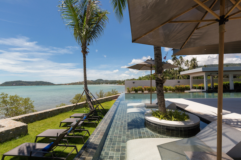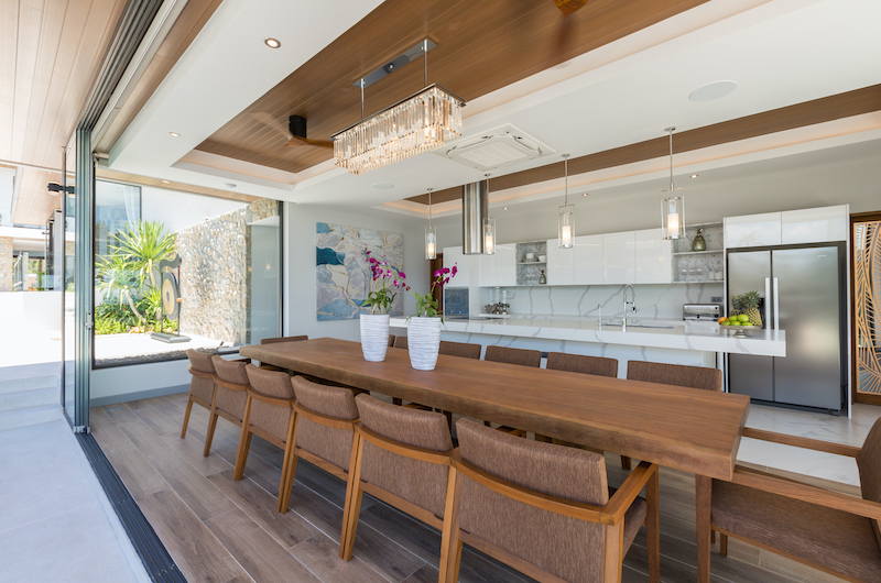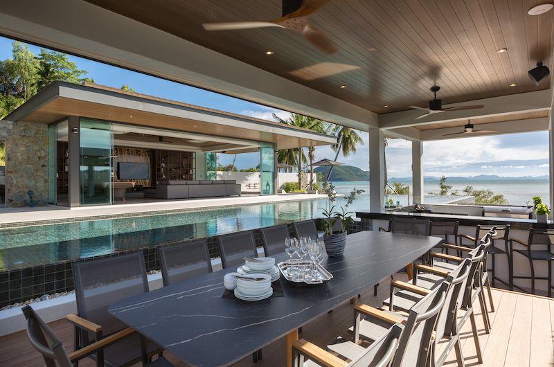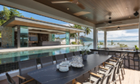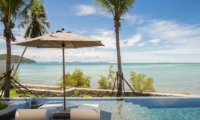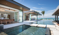 There’s plenty of opportunity to soak up the tropical sun and beautiful scenery at Villa Sea Renity. Not only does the villa offer a stunning beachfront locale, but it also comes with a show-stopping 21-metre lap pool and a fun shallow pool for the kids to enjoy. The poolside deck is dotted with sun beds, with a sunken lounge and a dining area to match only adding to the appeal.
