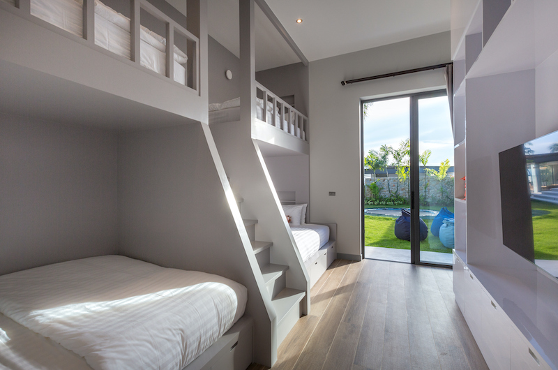Villa Sea Renity has six bedrooms, each furnished with a king-sized bed and generous amenities. In addition to these six main rooms, the villa features a fun bunk room which can sleep up to six kids in bunk beds. The villa can accommodate up to 12 adults and 6 children.