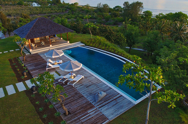 Villa Selalu is located on the island of Gili Gede in Lombok, Indonesia. The villa sits on a scenic vantage point, with a short stroll bringing you to a private white sand beach. There is a private boathouse on the water’s edge, equipped with snorkels, masks, fins and stand up paddle boards. Gili Gede is a tiny island, just four kilometres long, and you can easily explore the island on bicycle. A fast boat from Bali to Gili Gede takes about 1.5 hours. From Lombok International Airport, transfers to the villa take about two hours.