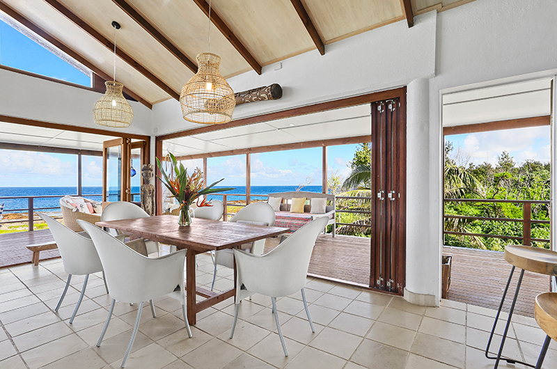 If you dream of waking up to panoramic ocean views and enjoying private oceanfront access right on your backyard, Villa Senang Masari is the place to stay. This statuesque white beach house is built directly on a secluded beach on Efate island in Vanuatu with stairs leading down to a turquoise ocean lagoon. Giving equal nods to local heritage and modern design, the five-bedroom villa features fresh white architecture with a full wall dedicated to a colourful Vanuatuan mural.