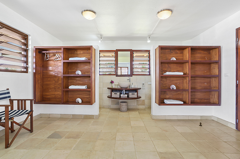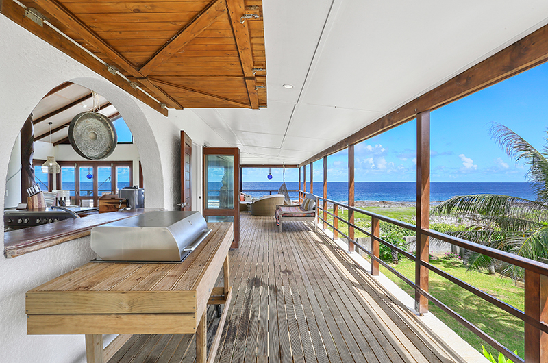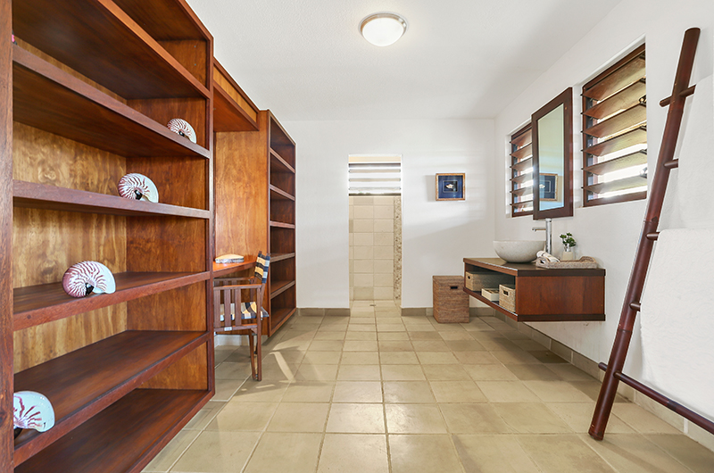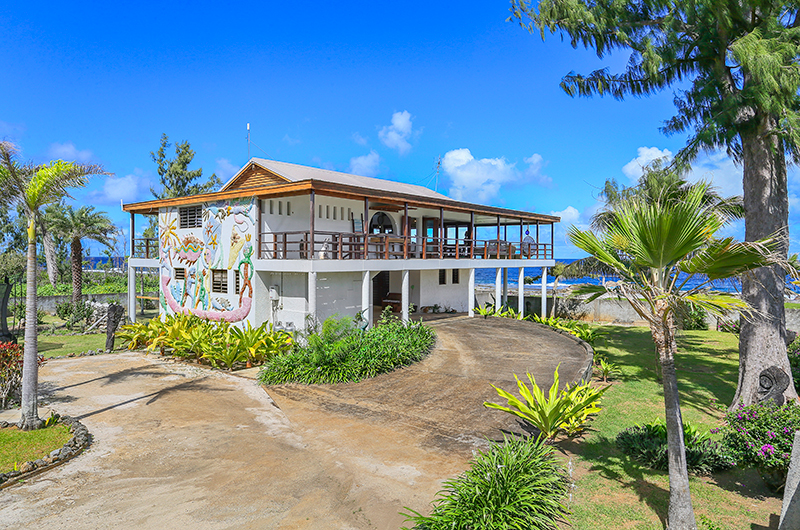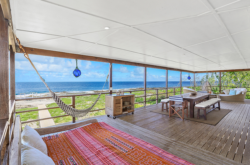Villa Senang Masari welcomes guests in with a bright colourful mural depicting Vanuatuan culture by famous local artist Aloi Pilioko. In contrast, the villa itself is all dressed in white with expansive balconies looking out to the Pacific Ocean. Hugged by generous lawns, the villa provides enviable access to a natural rock pool.
