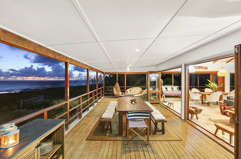 Villa Senang Masari is a five-bedroom property spanning some 5000 square metres, with rooms divided into two pavilions. The main house includes the living and dining areas and three ensuite bedrooms. The separate annexe houses the two remaining bedrooms. Overlooking the Pacific Ocean, the property boasts private beach access, a natural rock pool and two beachfront gazebos with an alfresco dining area.