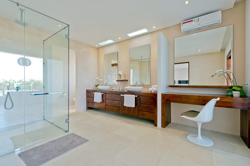 Villa Shaya has five bedrooms. Four rooms have king-sized beds and one room has two single beds which can also be set up as a king if need be. There are two bedrooms on ground level and three bedrooms are housed upstairs.
