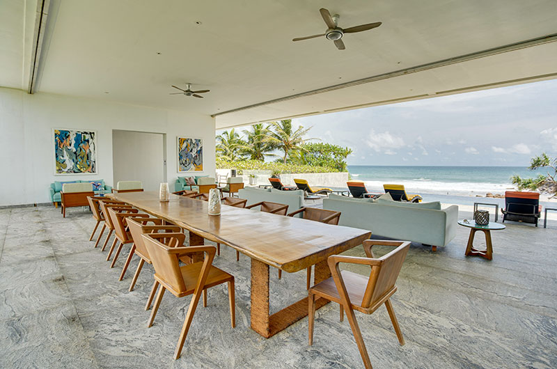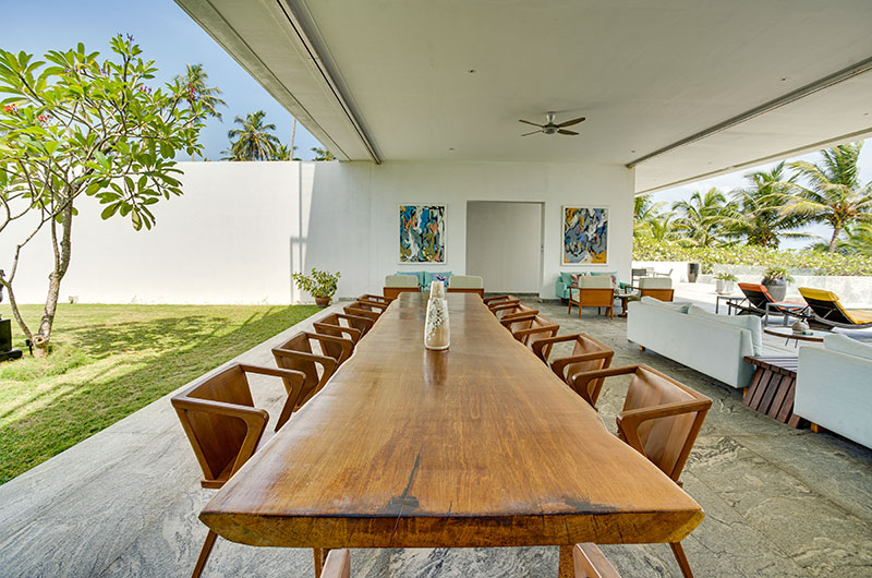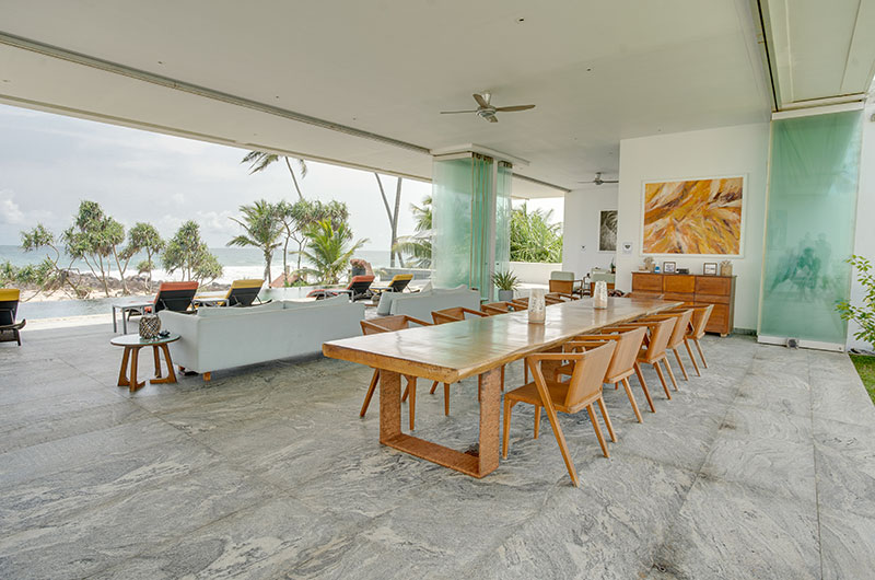 Villa Sielen Diva’s grand 14-seater dining table is located in the centre of the open-plan living room. A table can be set outside by the pool to get the best possible views of the beach.