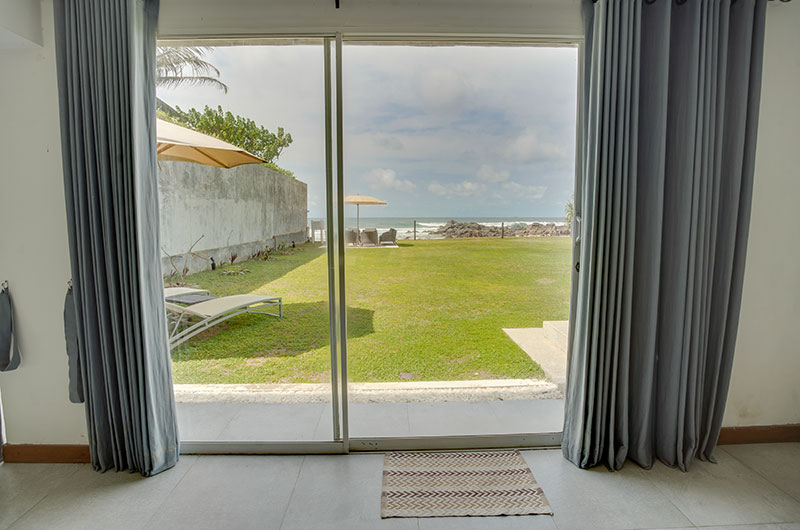 Also located on the first floor, the Musikaya bedroom faces the ocean and features a queen-sized bed, a TV and an ensuite bathroom with a bathtub and shower.