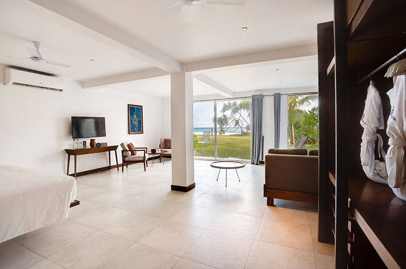 Aliya is another beach lawn suite with plenty of room for families. The room has a king-sized bed, a TV and an ensuite bathroom with bathtub and shower. The room also has a sofa bed sleeping one extra guest.