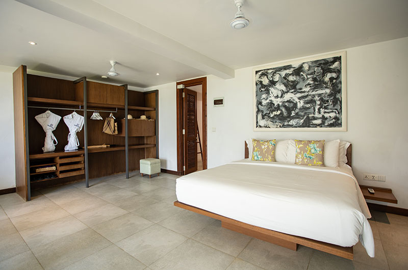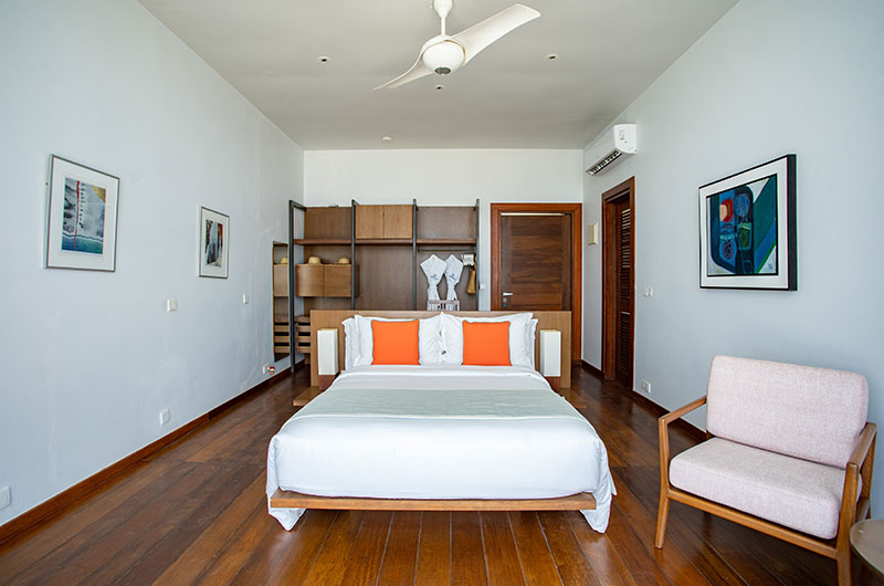 Located on ground level, the Monara bedroom faces the ocean and offers direct access to the poolside terrace. The room features a king-sized bed, a TV and an ensuite bathroom with a shower.