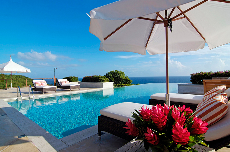 The turquoise swimming pool offers the perfect match for the Caribbean Sea which stretches beyond the villa’s garden. The pool is surrounded by a sun kissed deck with sun beds and parasols allowing guests to choose between sun and shade. As the cherry on top, the property also comes with a luxuriant open-air Jacuzzi.